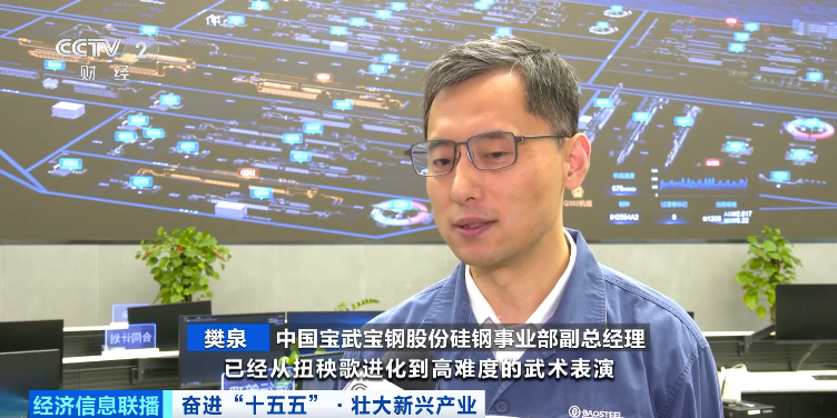 中国宝武宝钢股份硅钢事业部副总经理 樊泉: 今年的春晚机器人,已经从扭秧歌进化到高难度的武术表演,这背后是机器人全身上下几十个微电机高精度运行的结果。无取向硅钢作为电机电磁转换的核心功能材料,必须要具备更高的磁感、更低的铁损、更薄的规格。我们还有一条专门生产极薄料的产线年投产,届时在全球无取向硅钢领域,产能规模将是最大的。