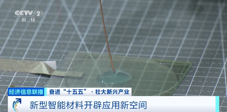 总台央视记者 孙超: 我手上拿着的这块轻薄柔软的材料,只要通上电就能自主变形,牢牢吸附物体,并且还能精准操控液滴,这就是西北工业大学最新研发的电活性界面增强智能材料。